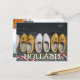Holland Dutch Wooden Shoes Postcard. A set of wooden shoes lined up outside the house at the door on a cobble stone street in Holland with text "Holland" postcard.