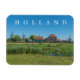 A beautiful view of windmills and sheep in Zaanse Schans in the Netherlands printed on a souvenir fridge magnet.