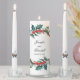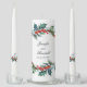 A beautiful evergreen holly branches in watercolors of red, green and blue-green highlights this holiday-inspired unity candle design. It's a wonderful choice for December weddings or weddings in other winter months. Personalize the easy to use text template with the bride and groom's names adn wedding date along with their first name initial on each of the taper candles.