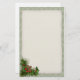 Pine branches with holly and pine cones decorate this holiday stationery.