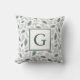 Decorate your home this Christmas season with good taste and good cheer! Our monogrammed throw pillow features your single initial family monogram in hunter green, surrounded by a festive holiday pattern of pine boughs, sage green leaves, and branches tipped with vibrant red holly berries.