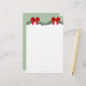 Festive holiday writing paper, done in white, with a light sage green header bordered with a garland of holly leaves and bright red satin looking bows. Customize to add additional text or use on your own printer at home. Lovely paper for your annual Christmas letter.
