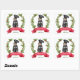 On these Holiday correspondence stickers, a portrait of an adorable Miniature Schnauzer dog is surrounded by a red berry holly wreath. At the bottom is a red banner with your custom Christmas greeting, and your signature is in green beneath it.