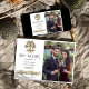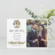 Wedding Save the Date invitation with photo and elegant typography. The design features golden wedding bells with a gold bow and a holly garland with gold holiday ornaments. Perfect for a holiday engagement announcement or a winter or christmas wedding. For co-ordinating invitations, stationery and day-of-event decor, please browse my Holly Bells Wedding Collection or message me to add any additional items you need.