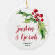 Holly Berries Greenery Personalized Engaged Couple Ceramic Ornament