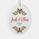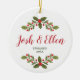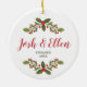 Holly Berries Greenery Personalized Engagement Ceramic Ornament