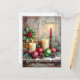 Send holiday warmth with this fully customizable postcard, featuring a stunning rustic Christmas illustration. The design captures a cozy, intimate scene: three softly glowing candles, flanked by deep-red holly berries, evergreen fir branches, and festive ornaments (a striking green and red), all set against a weathered wooden backdrop. This creates a beautiful visual texture, perfect for a vintage or farmhouse aesthetic. The elegant, flowing calligraphy on the front reads "Merry Christmas" and your custom name. The back maintains this script with a timeless, ready-to-mail greeting. This postcard is an effortless, beautiful way to send a personalized season's message, ideal for searches like vintage holiday postcards and rustic Christmas greetings.