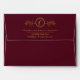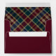 A luxurious blend of dark cranberry red and gold tone sets a tone of timeless elegance. Your return address is accented by an emblem created with holly motifs and your monogram initial in center, enclosed in a double circle in a gold tone. The inside features a rich dark plaid pattern in dark cranberry red, dark navy blue and dark teal green with faux gold threads. Perfect for your holiday mailings from personal to corporate.