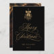 Holly Berry Bouquet Romantic Christmas Photo Black Holiday Card