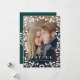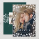 Simple and elegant holiday photo card frames your vertical photo with a border of white holly leaves and berries. Personalize with a Christmas or holiday greeting (shown with "joyful") and your names beneath. Add an additional photo to the back on a festive dark spruce green background with a stripe of matching holly foliage.