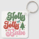 Holly Jolly Babe Retro Groovy Christmas Holidays Keychain