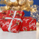 Holly Jolly Christmas Red Candy Cane Gold Bows Wrapping Paper