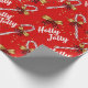 Holly Jolly Fancy Script, Christmas Candy Cane, Gold Bows, Illustration Pattern Red Wrapping Paper.