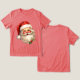T-shirt with a joyful illustration of a vintage style Santa Claus with red rosy cheeks. wearing his classic red Santa hat and his big white bear. A sprig of holly adds to the festive holiday spirit of this design.