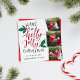 Festive holiday photo card in a unique square shape features three photos in a collage layout. "Have a holly jolly Christmas" appears to the left in hand lettered typography accented with red and green holly leaves and berries. Personalize with your names beneath. A beautiful and festive holiday card design in classic Christmas colors that's sure to delight everyone on your mailing list!