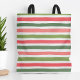 Custom tote bag design features colorful watercolor Christmas stripe pattern.