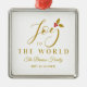Holly Joy to the World Golden Christmas Quote Metal Ornament