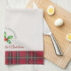 stylish red black tartan,rustic christmas custom monogram,personalized customized kitchen towel,personal name check pattern,berry checked checkered dishcloth,add your own festive text,merry xmas family surname,fancy plaid initialed initial,classic traditional winter berries,christmassy green holly leaves