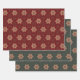 Holly Star Wrapping Paper 2 Green and 1 Red Pieces