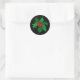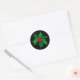 Sticker shown in the round in black with a holly art print.