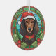Holly Wreath Brown Dachshund Christmas Glass Ornament