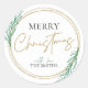 Personalise your holiday packaging and gift wrapping with a personalised holly wreath Merry Christmas stickers. This Greenery Christmas label includes a gold wreath with green leaves and elegant script font, with space for your name or family surname. The perfect finishing touch to your Christmas gifts.