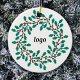 Add your own logo to this holly wreath design. Minimalist and professional. Ideal as a promotional holiday product for your employees, business associates, clients and customers.