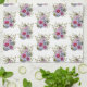 A beautiful, hand-drawn bouquet of flowers, including some pink and white hollyhocks, has attracted three lovely big honey bees. This image is hand drawn on a tablet. Eye-catching floral, botanical artwork.