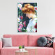 Canvas art features 'Hollyhocks and Sunlight' (1902) by Charles Courtney Curran. Originally an oil-on-canvas painting, the artwork features a red-haired woman among red, pink, and white hollyhock flowers in a Valentine color scheme. The young woman's ginger hair is in an updo, and she wears a white dress.