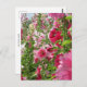 A postcard filled with colorful hollyhock flowers soaking up the summer sun along the banks of the Arakawa river in Tokyo. In Japan, hollyhocks (aoi) are a traditional symbol of fertility and abundance.