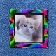 A bright, colorful and customizable photo frame. Use your own image and create a personalized memorial button for a cherished pet. Replace this kitten photo with your own.