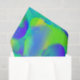 Translucent-edged organic blobby shapes - in primarily super-bright green with yellow and indigo contrast tones.