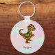 Cute colorful floral baby dinosaur over abstract blur hologram. Optional monogram