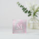 Holographic Brushed Pink Modern Monogram Elegant Square Business Card