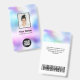 Easily personalize this Custom Holographic Pastel Employee Name Badge with Photo, Scan Bar Code and business logo. A colorful cute business design in baby pastel colors fully customizable in front and back sizes, sans-serif basic and modern fonts and a professional and clear look. Avaiable with lanyard, metal clip or with retractable. No minimum order.