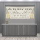 Holographic Glam Glitter Salon Opening Banner. This design features a classy signature script style font set against a beautiful modern iridescent sparkle background. Perfect for a beauty salon, hair stylist, makeup artist, or cosmetologist.