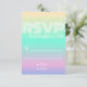 Holographic Ombre gradient in neon colors pink purple blue yellow with monogram modern trendy personalized wedding RSVP card. This card is easily editable. If you need help with the customization of this card or you need more matching products for this collection kindly message me via Zazzle.