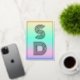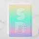 Holographic Ombre gradient in neon colors pink purple blue yellow with monogram in silver foil modern trendy personalized wedding invitation. This card is easily editable. If you need help with the customization of this card or you need more matching products for this collection kindly message me via Zazzle.