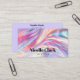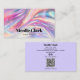 This modern, iridescent business card features your name or business name set in contemporary serif typography against a trendy holographic background. A great way to show that you are aware of new trends and stand out in your clients' minds. Perfect for any professional like a makeup artist, hair stylist, hairdresser, nail specialist, beauty salon owner, beautician, and more. You can customize the front with your name, title, or website address, and include business details like website address, social media accounts, social media icons (Facebook, Instagram), a scannable QR code, and additional text such as "connect with us" or "scan to book appointment" on the back.