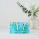 Faux sparkly rainbow holographic liquid drip over a turquoise aqua blue gradient.