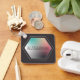 Stylish grey keychain with holographic retro style y2k hexagonal gradient frame in pastel light colors including blue yellow pink with a name in the middle. Modern style accessories.