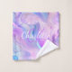 Pink, purple, blue holgraphic background. Personalize and add your name and monogram initials. The name is written with a hand lettered style script.