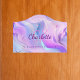 A pink, purple, blue holographic background. Personalize and add your name and monogram initials. Purple and pink colored letters.
