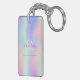 A trendy holographic background with pastel colors in pink, purple, mint green. Personalize and add your first name, monogram initials and full name. Purple and white colored letters.
