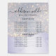 Holographic Purple Glitter Luxury Glam Price List Foam Board. This design features a classy signature calligraphy script style font set against a beautiful modern iridescent sparkle lilac purple background. Perfect for a beauty salon, hair stylist, makeup artist, nail technician, lash technician or cosmetologist.