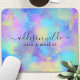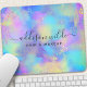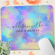 Unleash your inner artist with this chic and stylish mousepad! A vibrant mix of pastel blues, pinks, purples, and yellows creates a dreamy, watercolor-like backdrop. Shimmering glitter accents add a touch of glam, perfect for the creative professional. Personalize it with your name and title in a modern sans-serif font for a truly unique workspace accessory. This design is both functional and beautiful, making it a great choice for any hair and makeup artist.