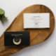 Elegant business cards for yoga studio, massage studios, massage therapy, meditation teacher, natural health counselor, spas or wellness professionals feature a gold holographic illustration of a third eye over crescent moon on a impressive black background.