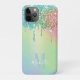 Holographic Unicorn Glitter Drips Script Monogram iPhone case.