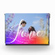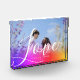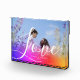 create your own Couple Photo Block with best picture of you overlayed with pink and purple watercolor abstract holography painting with name, year below and beautiful "love"