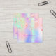 A trendy holographic, iridescent background with unicorn colors and rainbow colors in pink, purple, rose gold, mint green. Decorated with falling,dripping stars. Personalize and add your name, title, phone number, mail and website adsress. Purple letters.